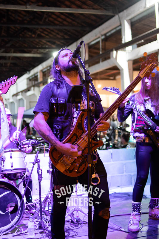 Das 10h às 20h, o evento transformouo galpão em um cenário digno de garagem americana dos anos 70: ferro velho ganhando vida, riffs rasgados no ar, cheiro de gasolina, motores roncando e gente de verdade ocupando o espaço como uma tribo.